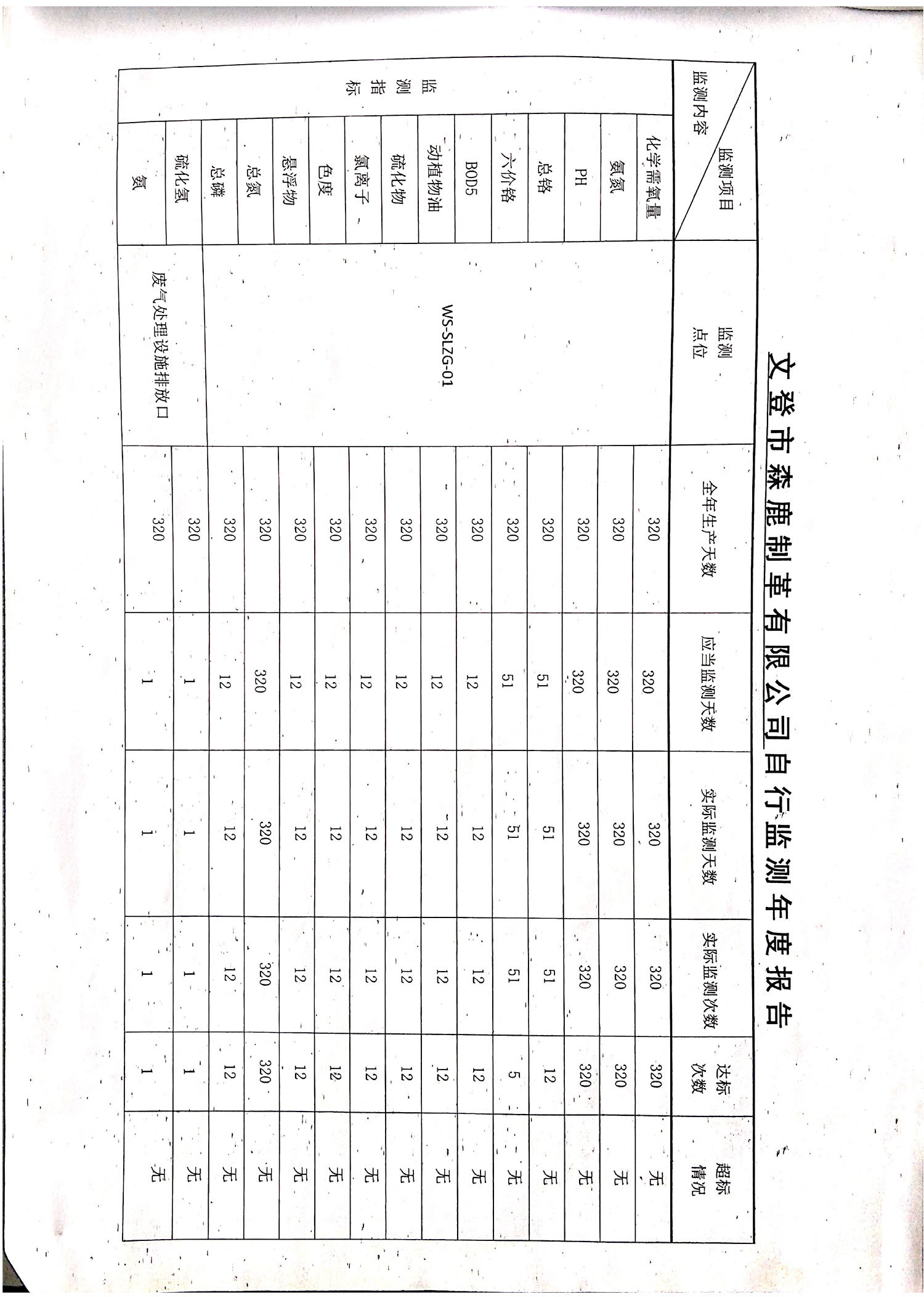 2019年自行监测年度报告